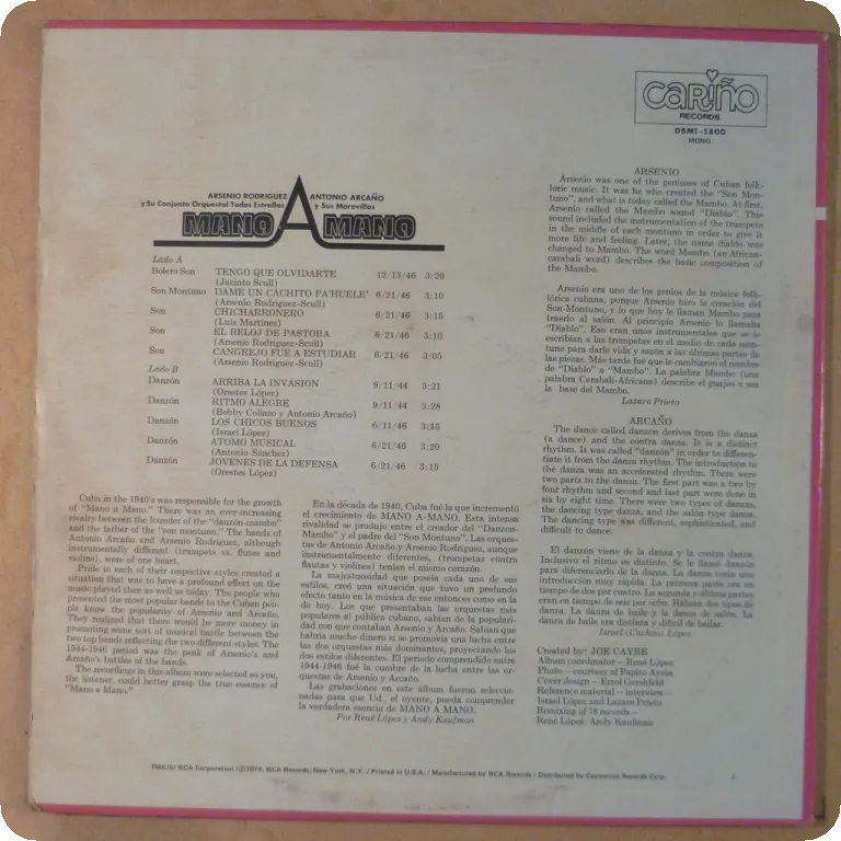 1940's sones & danzones by Arsenio & conjunto Orquestal todos estrellas & Antonio Arcano. Minor wear on cover, record plays sweetly, top shape