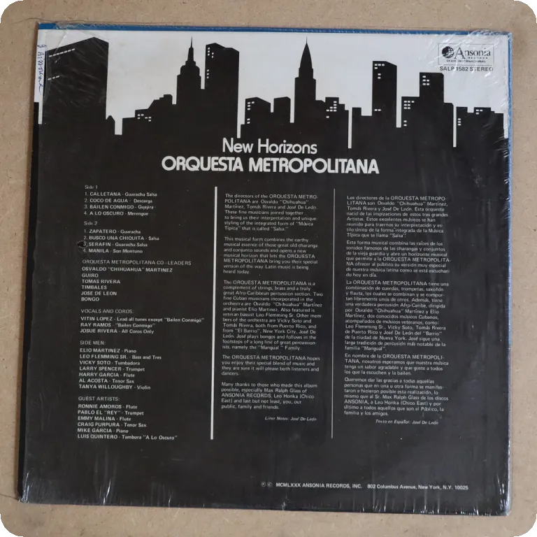 Consistent LP featuring salsa dancers, sleeve in og shrink and in great condition, writings on labels, plays sweetly.