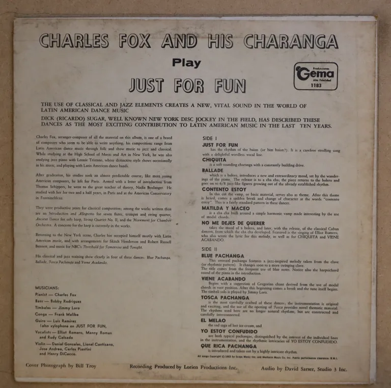 Latin jazz charanga instrumental killer « viene acabando » & other solid pachanga & charanga tunes on this second press, sleeve has very minor wear, record plays greatly with very minor sound distortion ON b side from slightly offcentered hole (all audios from B).