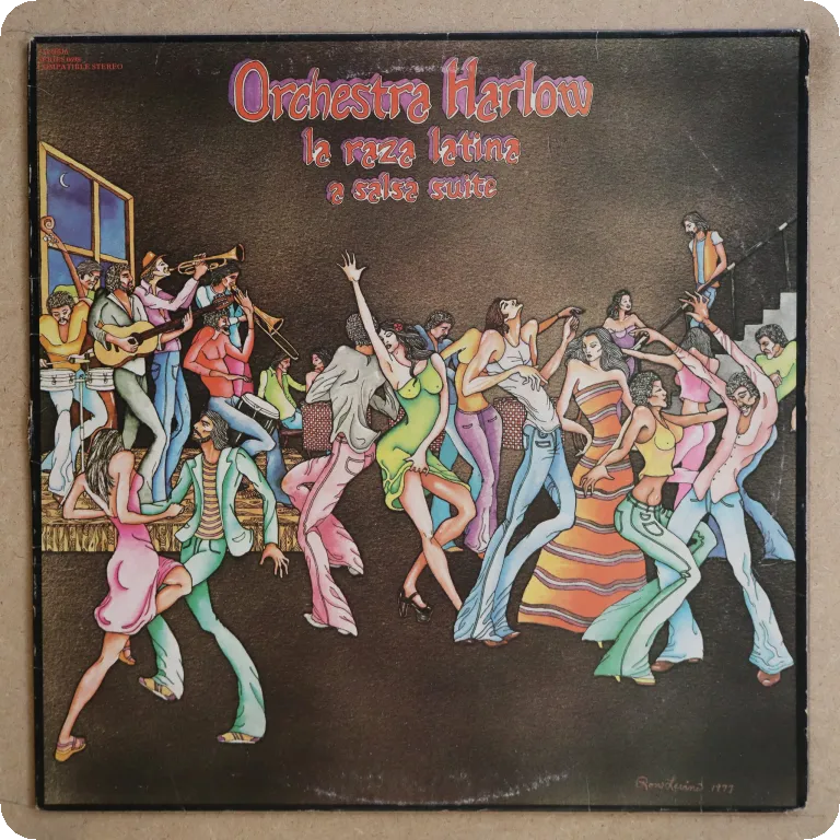 3 salsa dancers & a consistent salsa & latin jazz LP, sleeve has a bit of aging & light dirt, large writing on front, record plays nicely w/ only extremely light occasional noise from some very light