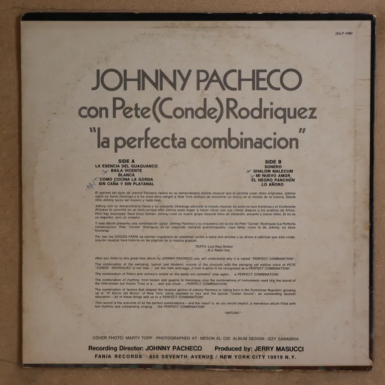 Several dancefloor tunes on this early salsa LP by the 2 giants. Mono original ! Dirt wear & aging, 5" split on top, 7" split on bottom, ringwear,creases, small writings on bottom back, record plays