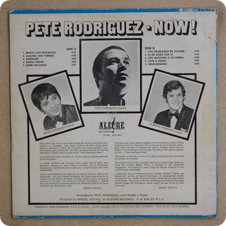 latin jazz / descarga masterpiece, original black label heavy press. Dirt on cover, large writings on back, split along all top & bottom, record plays w/ very reasonable to hardly noticeable noise from marks, solid VG- to solid VG