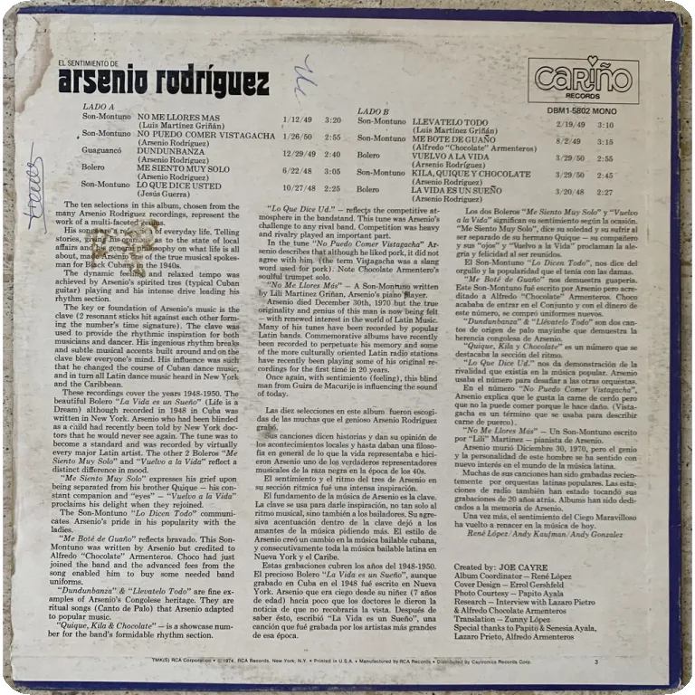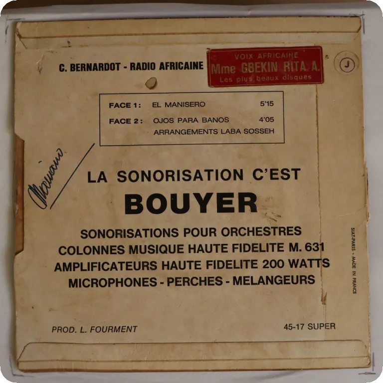2 sones & a bolero on top on this rare title by the Senegal group. Sleeve has wear, writings, shop sticker, some peel off & beige water damage on back, writings on labels. Record has reasonable to light noise from numerous marks, ranging from weak to solid VG-.