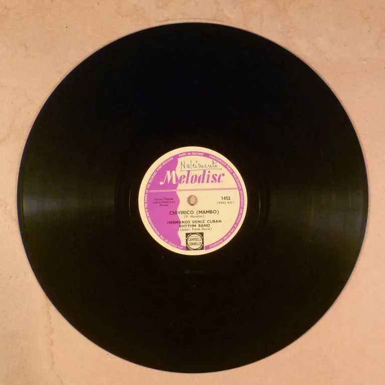 A rumba w/ mambo vibe & an instrumental bolero on this release for the collectible G.V. series. Record is V+, great shape w/ the usual backing 78rpm pressing noise & some opaque dirt or pressing wear.