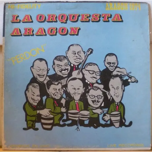 Unusual and untraceable Orquesta Aragon release which includes some genuine live recordings but might also have material taken from previous releases. Tracklisting is : Perdon No lo puedo perder Un beso de recuerdo Nosotros Besos con monzancha Sombras La vida es un sueno Felicidad Cuatro vida Repicando bata. Sleeve is VG- to VG w/ some aging & dirt, mini peel off, writings on back. Record w/ bad mastering/recordings & numerous surface marks.