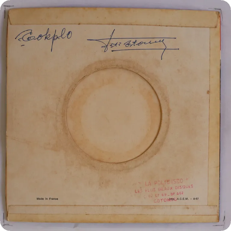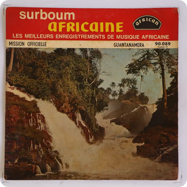 Congolese rumba sweetness double sider. Rubber stamps & writings on labels. Record plays w/ constant noise from numerous marks, solid G to VG- depending on parts.