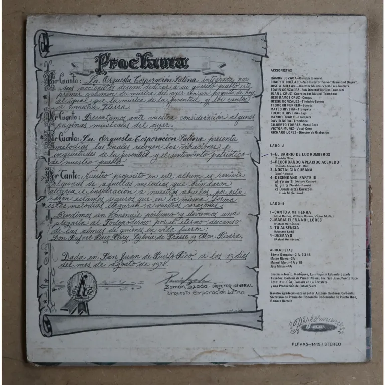 Solid guaguanco El barrio de los rumberos on this salsa tipica wonder w/ 2 nice guajiras as well, wear & dirt on cover, split on all top, writings on front & labels, record has some marks & very reasonable to hardly noticeable noise, very solid VG- to VG/VG+ depending on parts.
