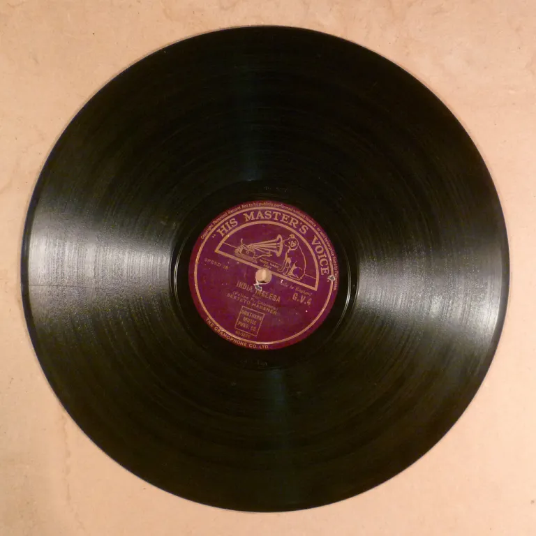 Male and female leading voices on this late 50's Bollywood shellac rarity. Rubber stamp & writings on labels. Record is V- to V w/ light marks & some opaque pressing stains a light backing noise