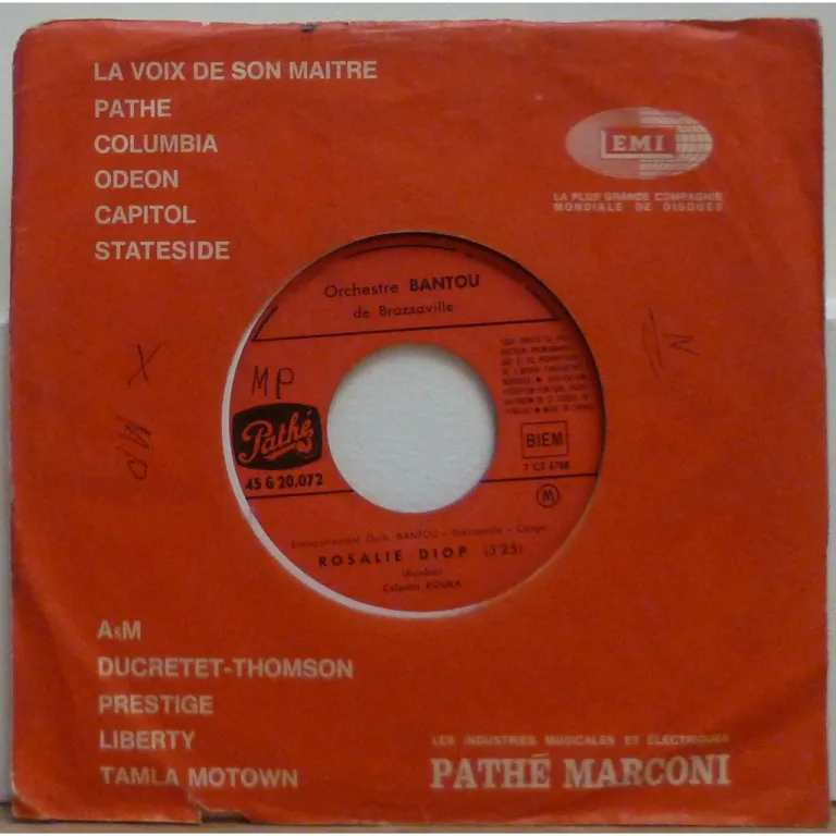 Rumba double sider rarity by the legendary Brazzaville orchestra, A side is single only, B side was later compiled on one of their 76 Pathe compilation lp's. Sleeve has some wear, creases, writings on