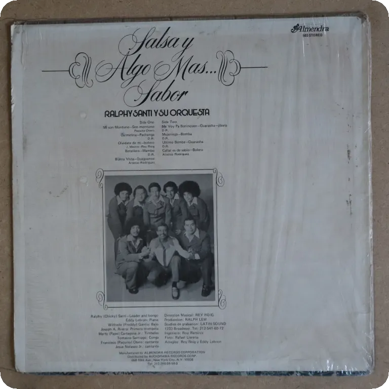 Consistent salsa LP on a tough to find label. Aging/wear, 1,5" split on top & bottom, sticker on front, writings on cover & labels, large beige dirt stain on back, record plays w/ light occasional