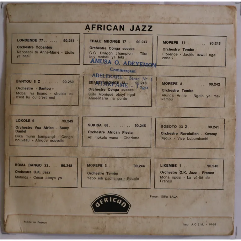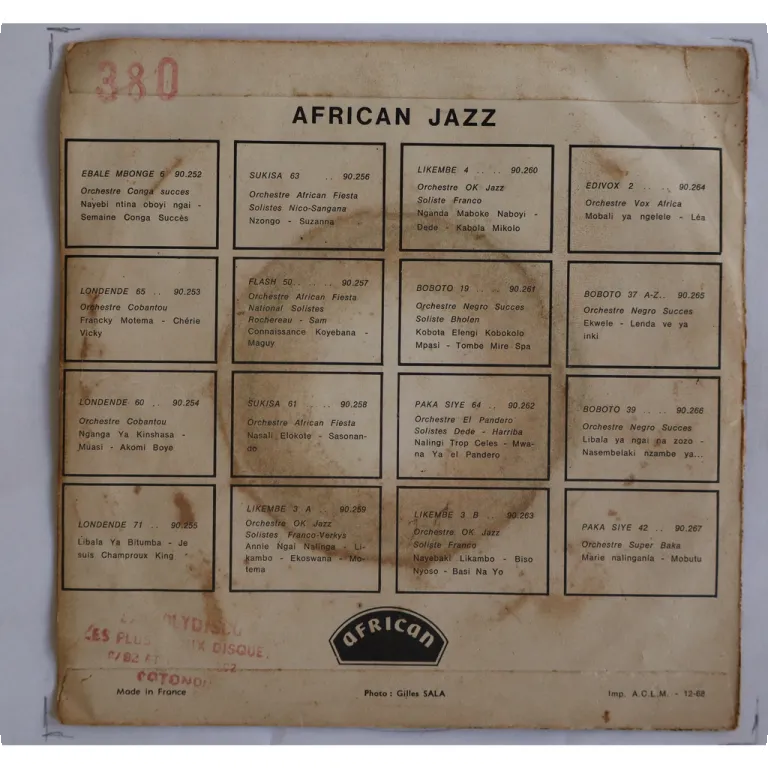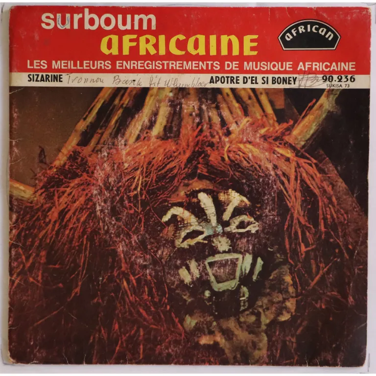 Killer pachanga / charanga Congolese cover of Hijo del Siboney as originally recorded by Pacheco on his Sabor tipico LP. Impossible to find ! Sleeve some dirt & aging, writings, shop stamp on back, record has numerous marks & constant strong to reasonable noise.
