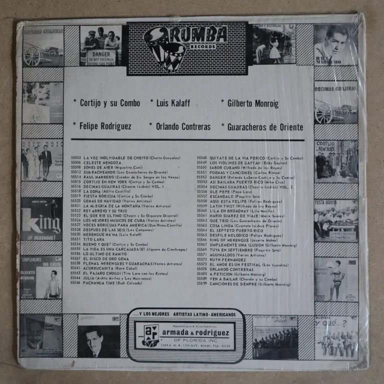 Several dancefloor winner guarachas & excellent guajiras & sones on this classic LP, sleeve is in OG shrink and has dirt wear, large glue residue & light brown water damage on front, record plays w/