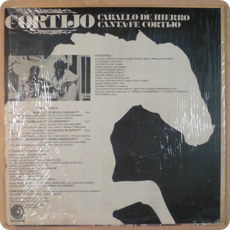 Salsa dancers w/ lead vocals by lady singer Fe Cortijo. Some wear on cover though still in OG shrink. Record in great shape.