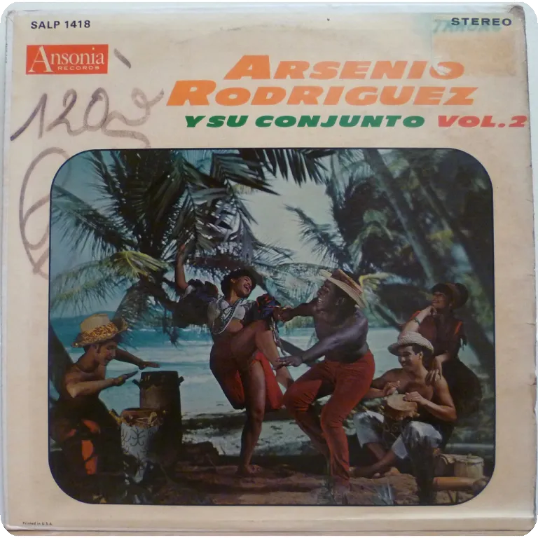 Raw sones montunos, pachanga & other latin beats by the Cuban legend. 70's issue, no deep groove, wear on cover, glue residue, small peel off & large writings on front, large writings on back, record