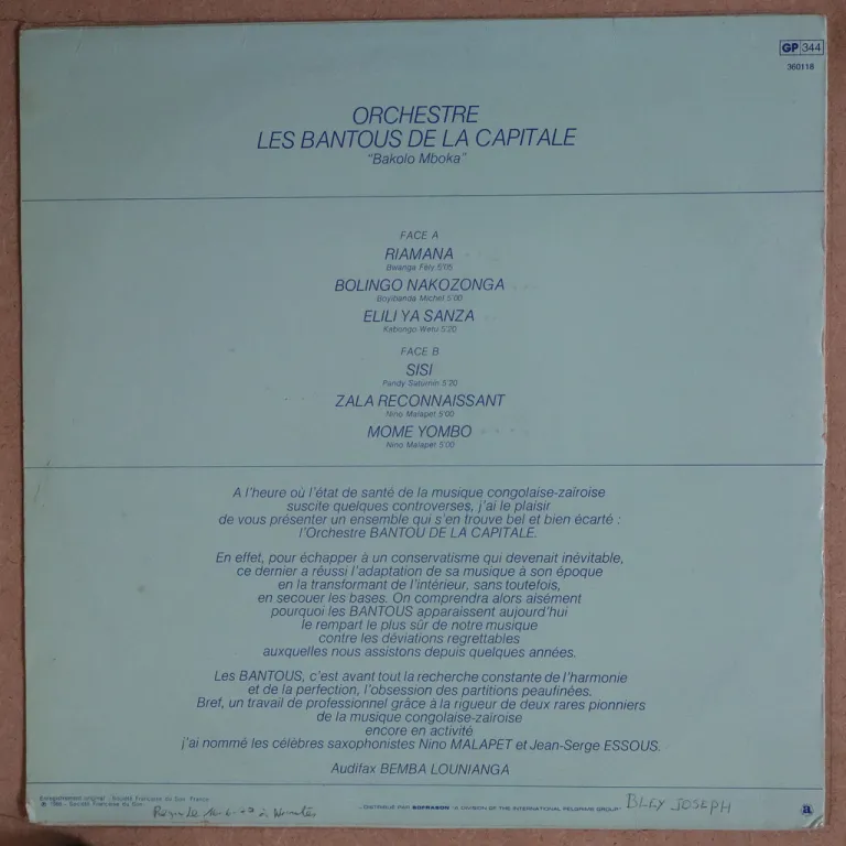 features the afro latin soul winner "Mome yombo" + several consistent soukous rumba tunes. Sleeve has light wear, small writings along bottom back, bump on bottom mouth corner, record plays sweetly EX on most tracks, top shape, but has an opaque pressing patch on A1 causing light wooshes.