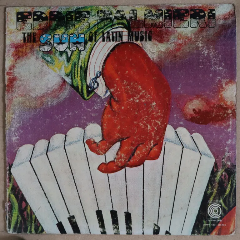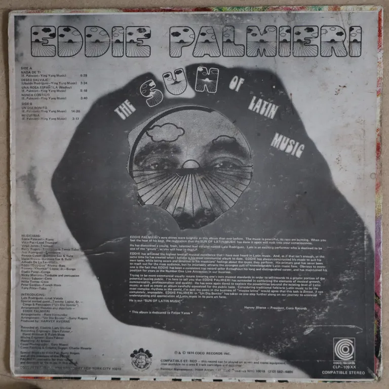 2 salsa dancers on top & a cumbia on this otherwise classic latin jazz album. Aging & dirt, 7" split on spine, air bubble underneath upper paper sheet on back, record plays really greatly most of the time except on the quiet intro to B 1 which has light noise from unremoveable dirt, ranges from VG to VG++