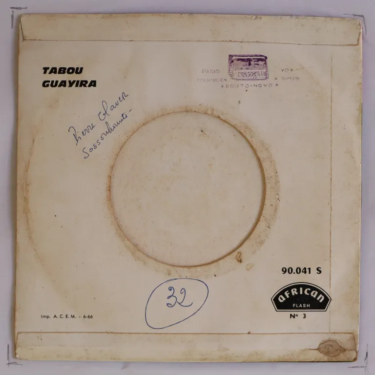 One of the best Cuban style guajiras recorded the Congolese super star on this scarce single. Some wear & dirt on cover, writings on back & labels, record has constant reasonable noise & numerous clicks from marks.