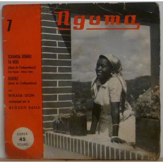 Congolese cha cha cha meeting march rhythm & straight march as recorded by one Congo's legends for the equally legendary label as a tribute to Congo independence. Sleeve w/ dirt & aging, writings on back & labels, mini tear & bump on mouth. Record w/ constant reasonable to light noise from marks