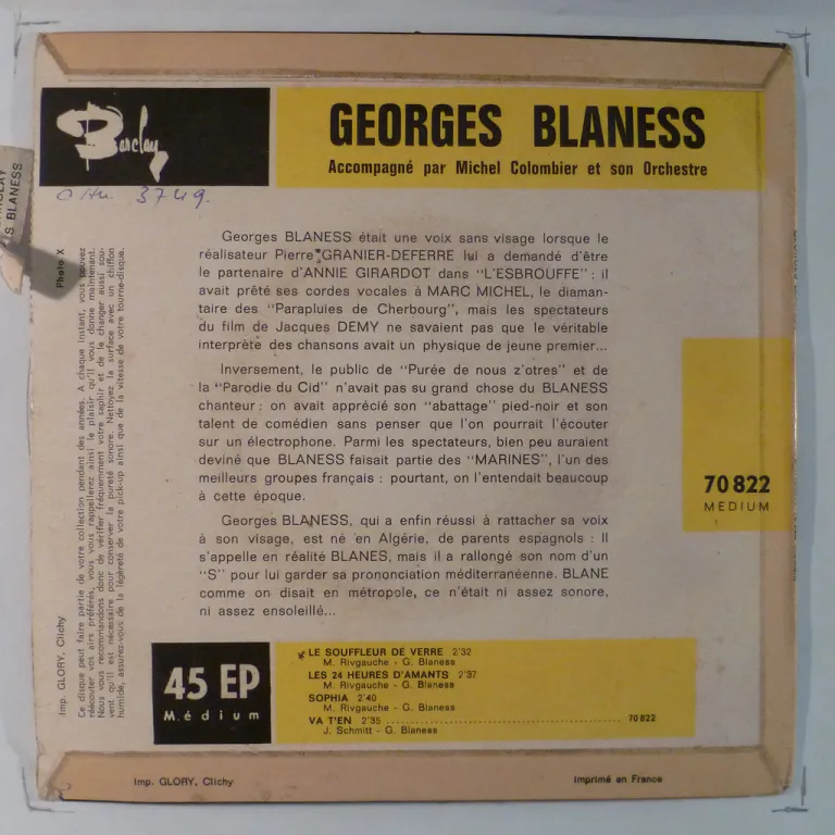 GEORGES BLANESS - Le souffleur de verre / Les 24 heures d'amants / Sophia / Va t'en