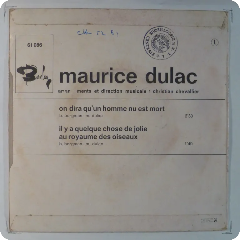 Cuban music oriente syle acoustic guitar backing on one singular track as recorded by this French pop singer. Sleeve has some wear, rubber stamps on cover & labels, writings on back & labels, sticker