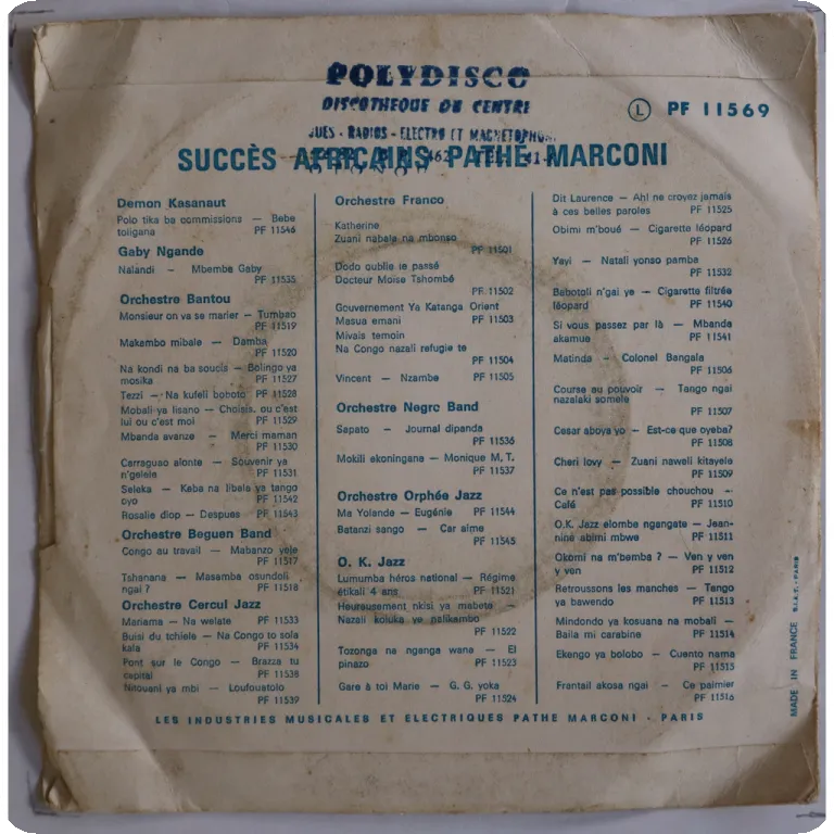 Rumba double sider by the Congo Brazzaville legends. Some wear on cover, shop stamp & ringwear on back, warp on corners, record is solid VG- to VG w/ light to hardly noticeable noise