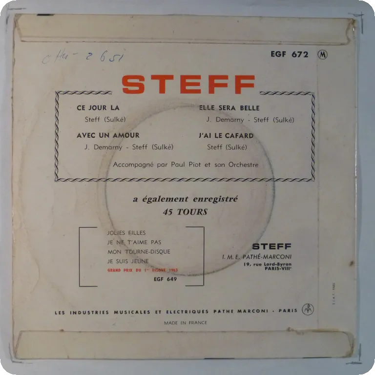 Symphonic soul & rhythm n' blues tunes by French pop singer, sleeve has aging & dirt, ringwear, writings on back & labels, mini peel off on mouth, record plays w/ very light to unnoticeable noise.