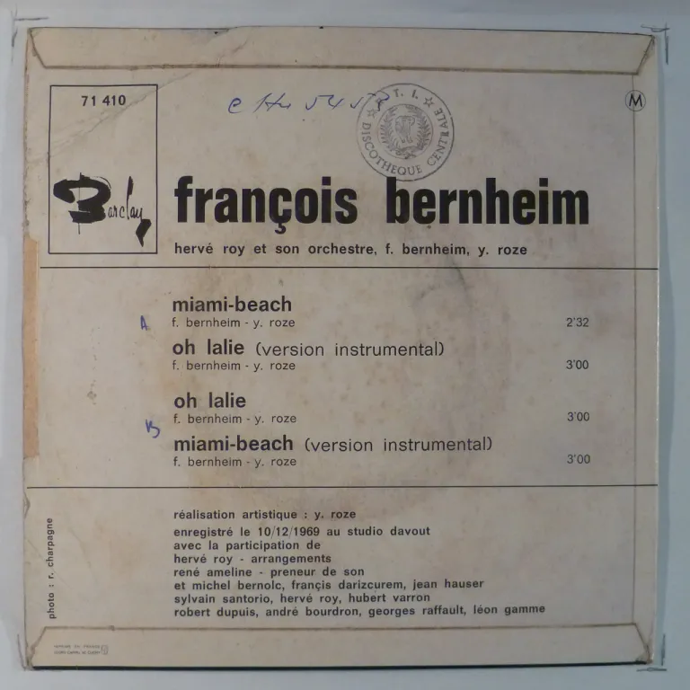 FRANCOIS BERNHEIM - Miami beach / Oh lalie instrumental / Oh lalie / Miami beach instrumental