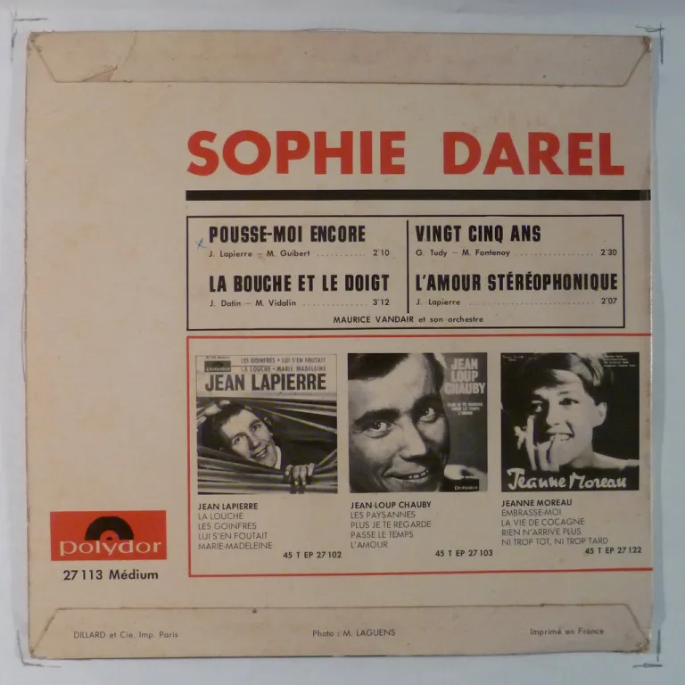 SOPHIE DAREL - Pousse moi encore / La bouche et le doigt / Vingt cinq ans / L'amour stereophonique