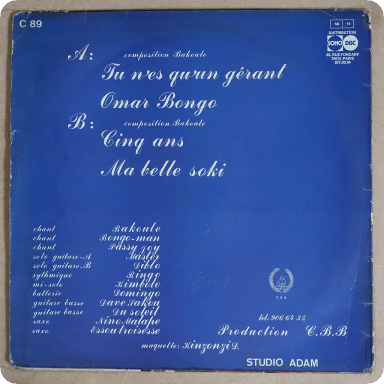 Killer part 2 dancefloor soukous winners on this Congolese LP. Aging & dirt on cover, creases, small peel off along spine & mouth, dirt on labels. Recor has numerous marks & light to hardly noticeable
