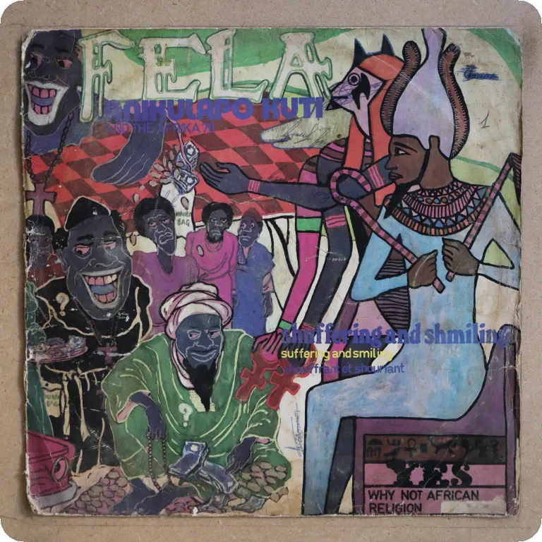 Great Fela title, sleeve w/ minor wear, record plays w/ very reasonable to very light noise & occasional clicks to hardly any noise, VG- to VG/VG+, depending on parts