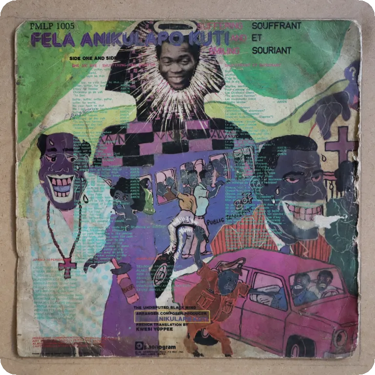 Deep melancholic afrobeat one tracker by the Nigerian king, sleeve w/ strong aging & dirt, few peel off, small bite on top mouth, creases, 3" split on spine, writings on front & labels, record plays w