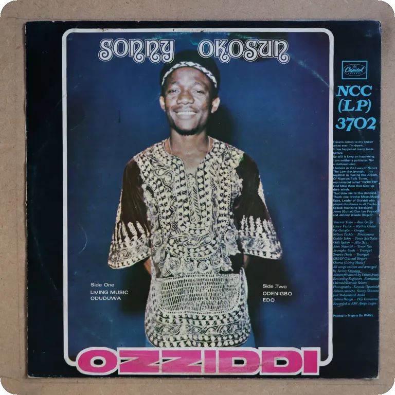 Feat. the afro manding fusion track "Ledymen" w/ that spiritual flute solo, the African latin son Malamokhola, also check the organ work on the rather cheesy "Ibonie", sleeve has minor wear, record