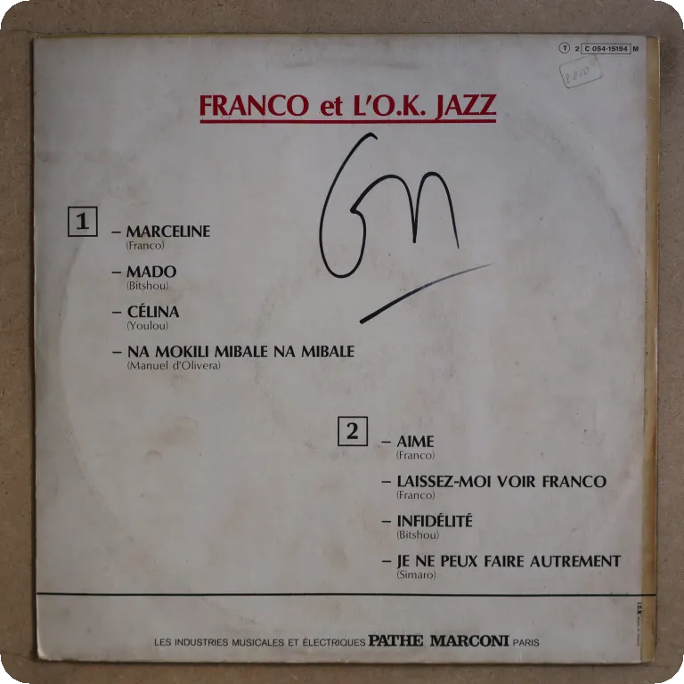 Raw rumbas, sometimes with a psych twist on this rare Pathe release of an early seventies LP recorded by Franco w/ OK JAZZ, minor wear on cover, large writings & some dirt on back, record in pretty