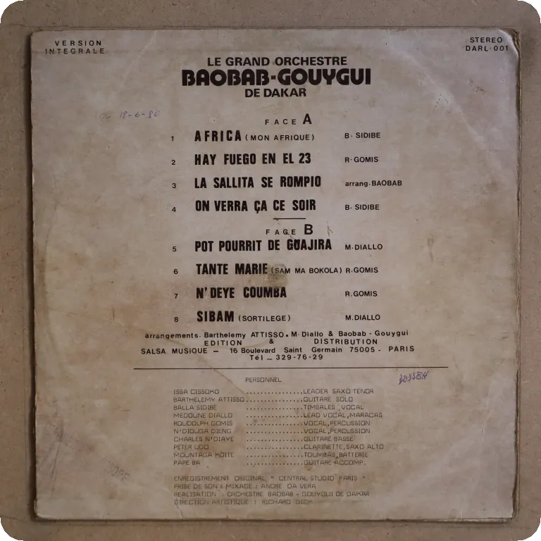 First volume released by Baobab on the BUUR catalogue, w/ a deep afro mandingo tune, also check Saf mana dem, the afrolatin spiced Papa njaay & Am saxul. Sleeve has some aging, strong wear on spine