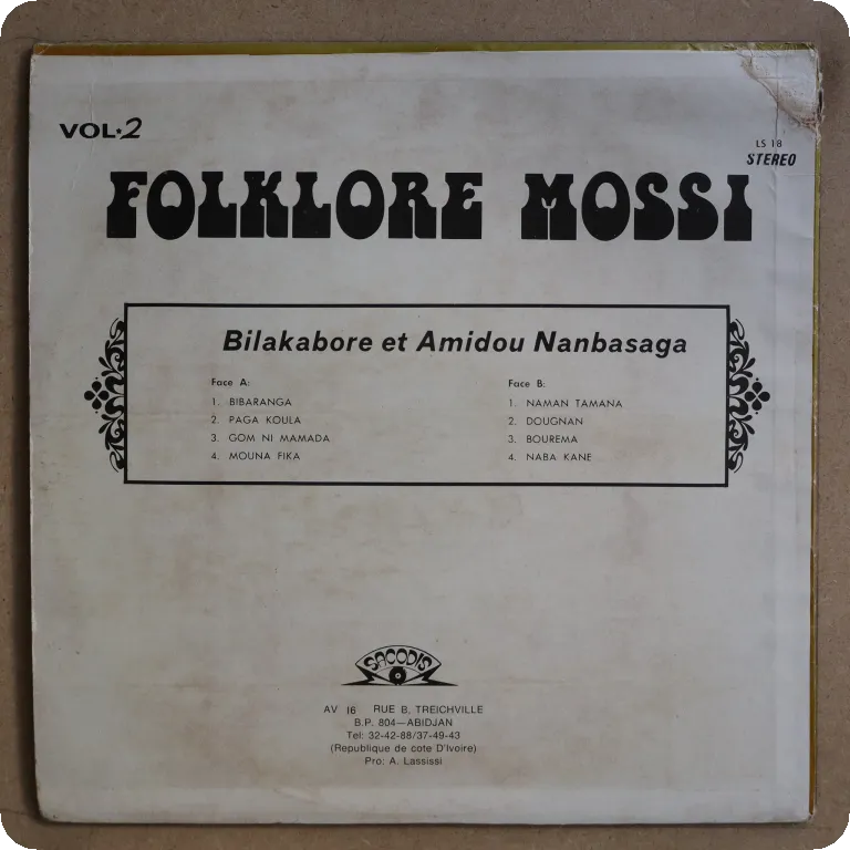 Griot music from Burkina Faso. Sleeve has some mold wear & beige water on spine, vinyl in nice shape overall with a few unproper stocking marks, dead stock copy.