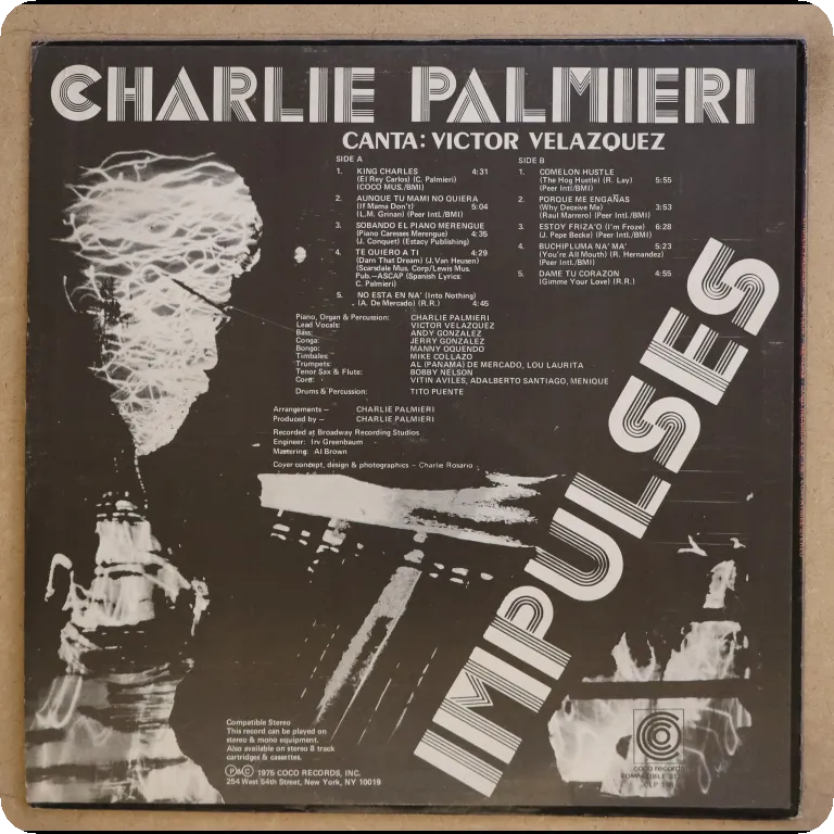 Check the descarga title tune & several dancefloor winners on this excellent '73 LP. Some dirt & ring wear on back, dirt on labels, record plays greatly with only very light marks.