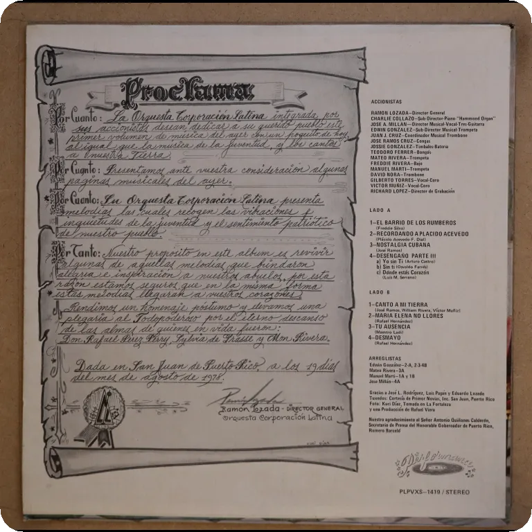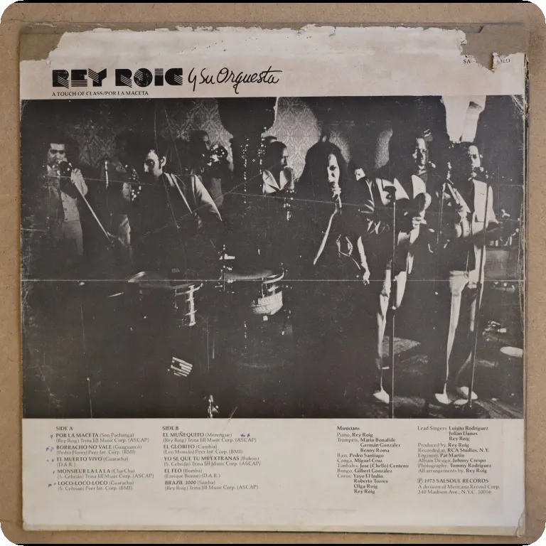 Early salsa LP, dancefloor stormer "Venceremos". Mono OG! Aging & dirt wear, peel off along top, split along all top, record plays greatly