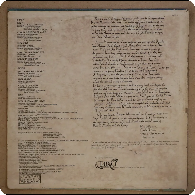 Consistent and outstanding latin fusion & salsa / latin jazz masterpiece sought after for the great cover of the soul classic "feel like making love". 10" split on top & bottom, small peel off on