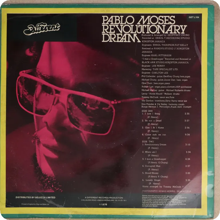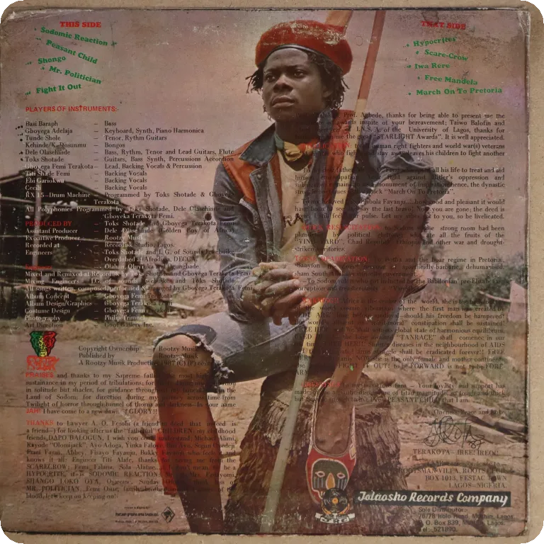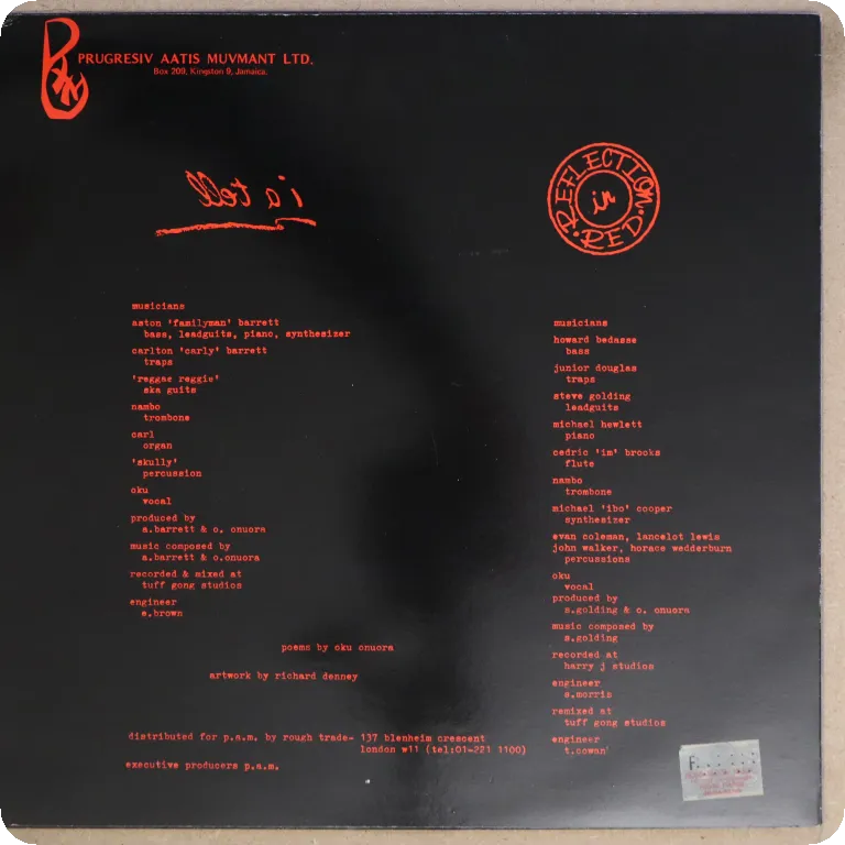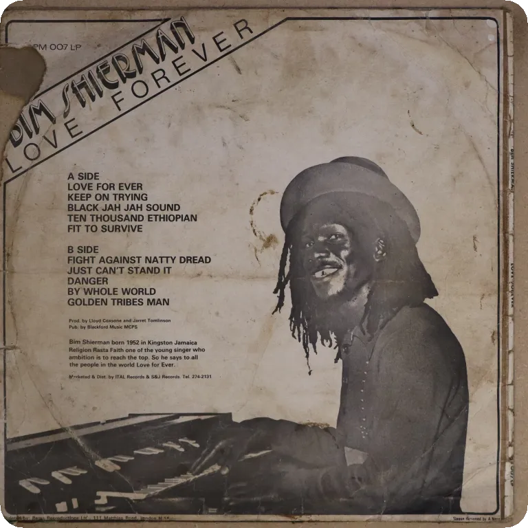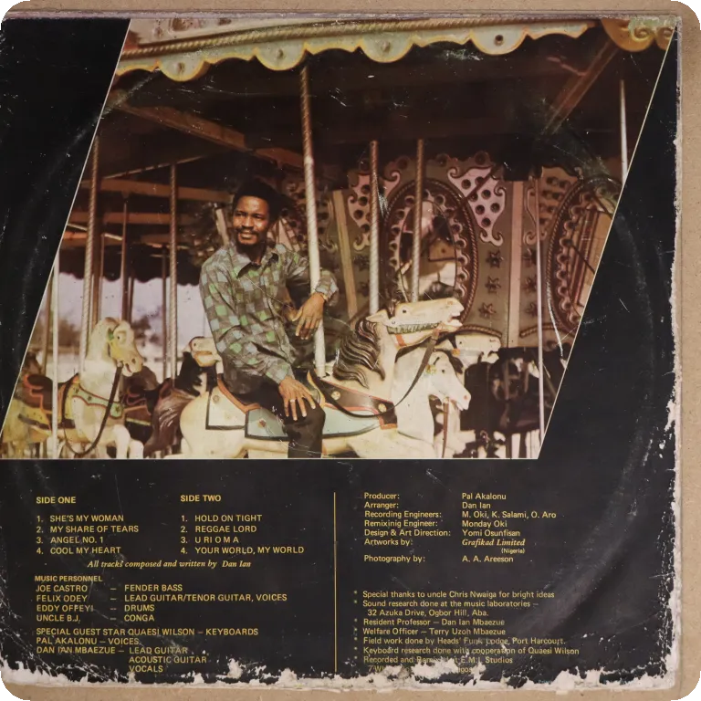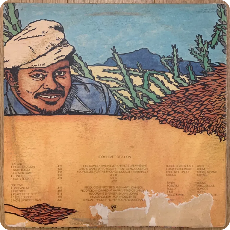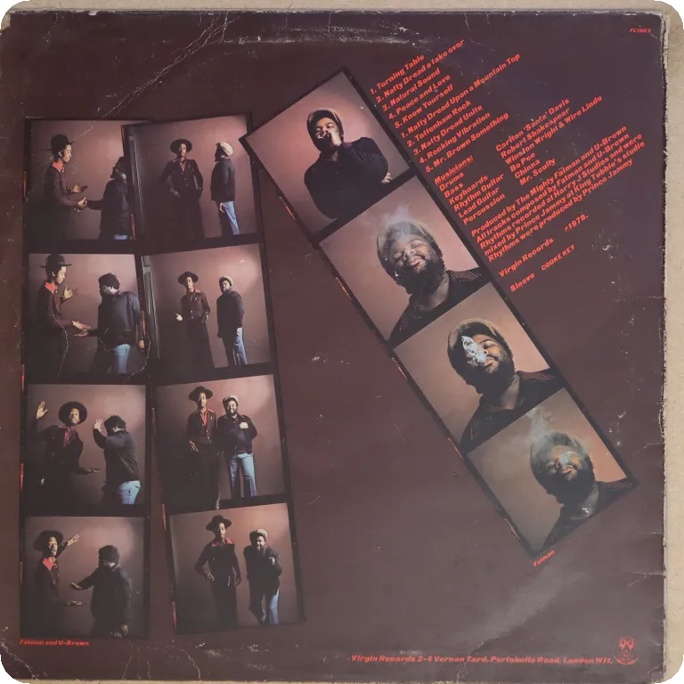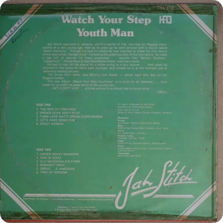 Roots reggae rarity recorded in Houston Texas by Nigerian artist. Sleeve has aging & dirt, warp, peel off & paper stuck from humidity on back & inside gatefold, mold wear & dirt on A side label