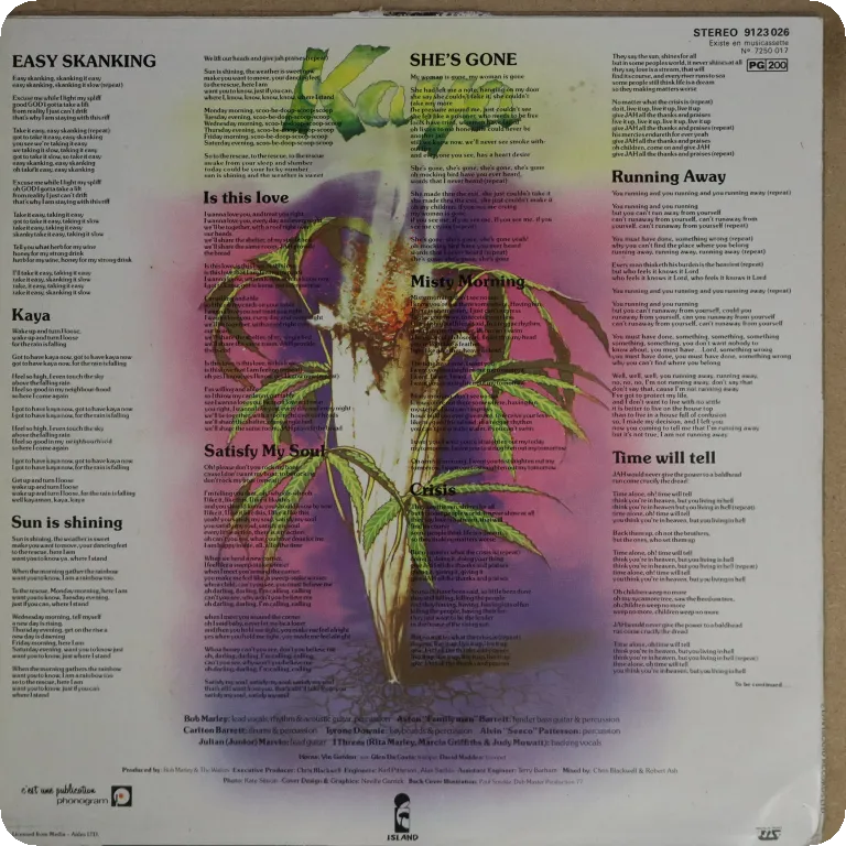 Roots reggae masterpiece by the king of reggae, features such hitstitl tune, Easy skanking, Is this love, etc. Sleeve has minor wear, shop sticker on front, 1,5" split on top, record has very light