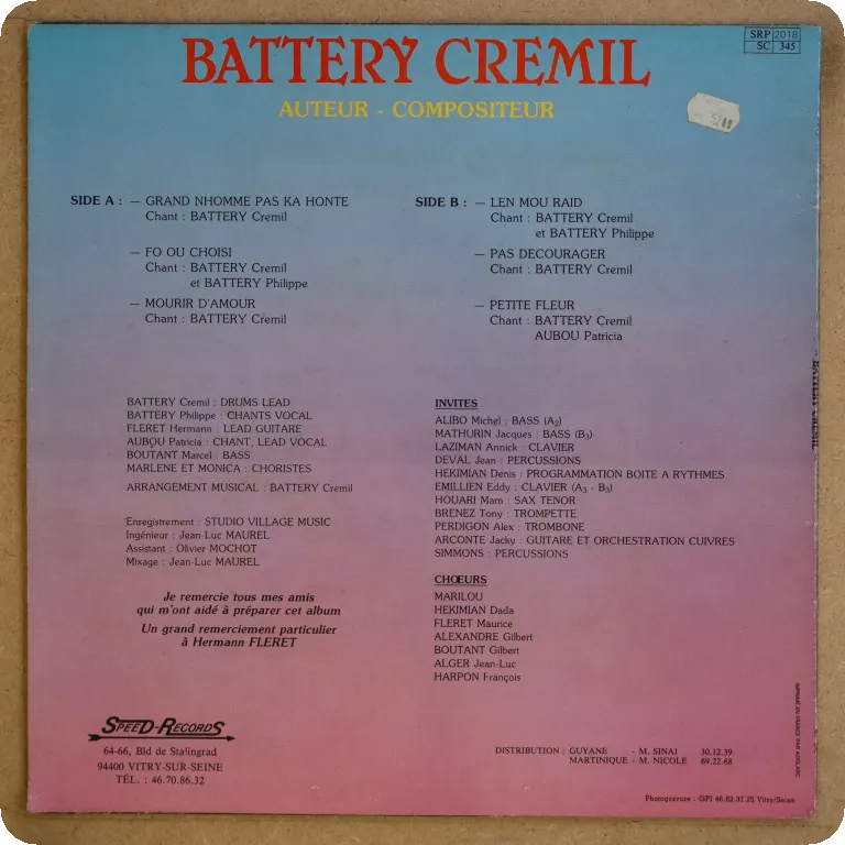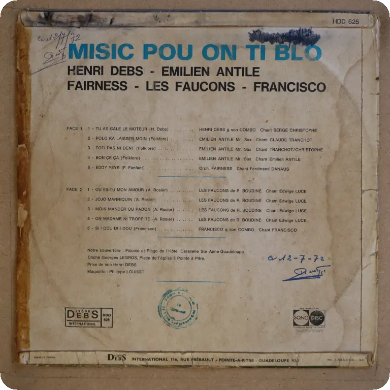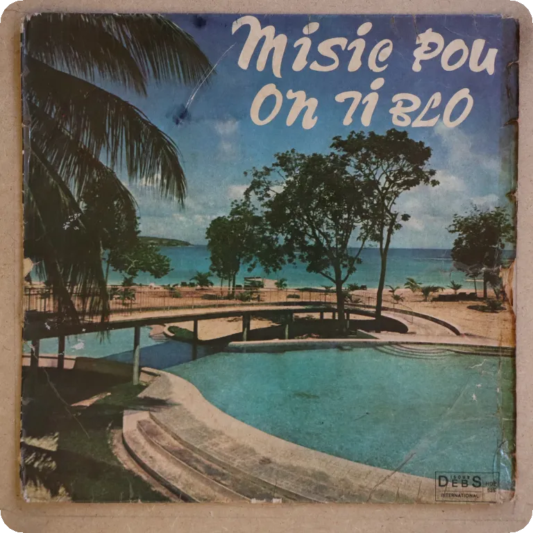 Mainly cadence rempa & biguines on this scarce early 70's compilation of previously released single only material. Sleeve has strong wear & aging, glue residues & bites & teas along mouth, beige water