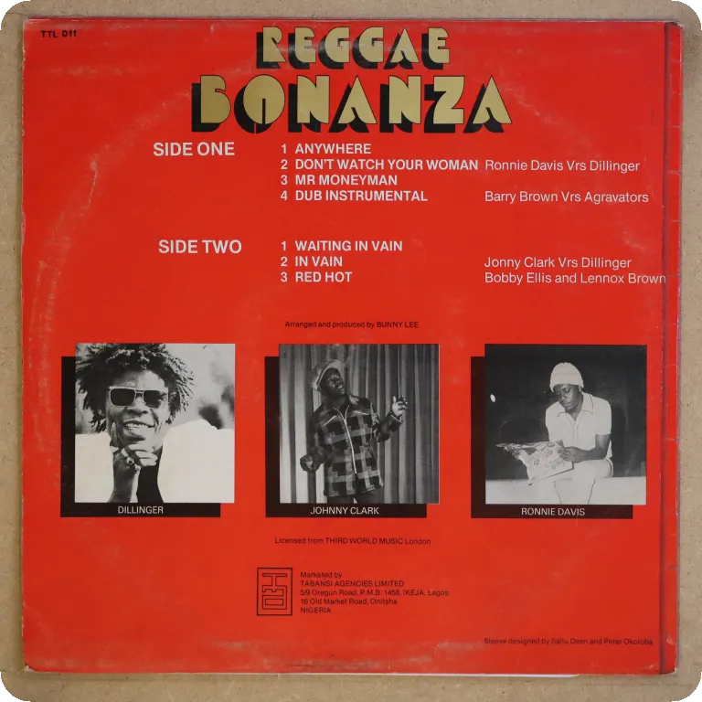 Roots reggae rarity recorded in Houston Texas by Nigerian artist. Sleeve has aging & dirt, warp, peel off & paper stuck from humidity on back & inside gatefold, mold wear & dirt on A side label