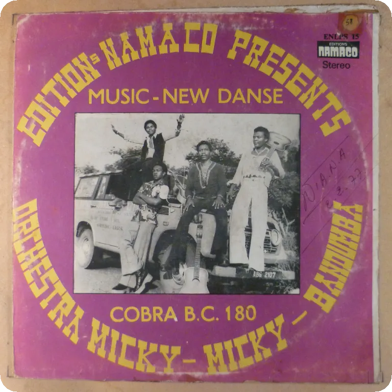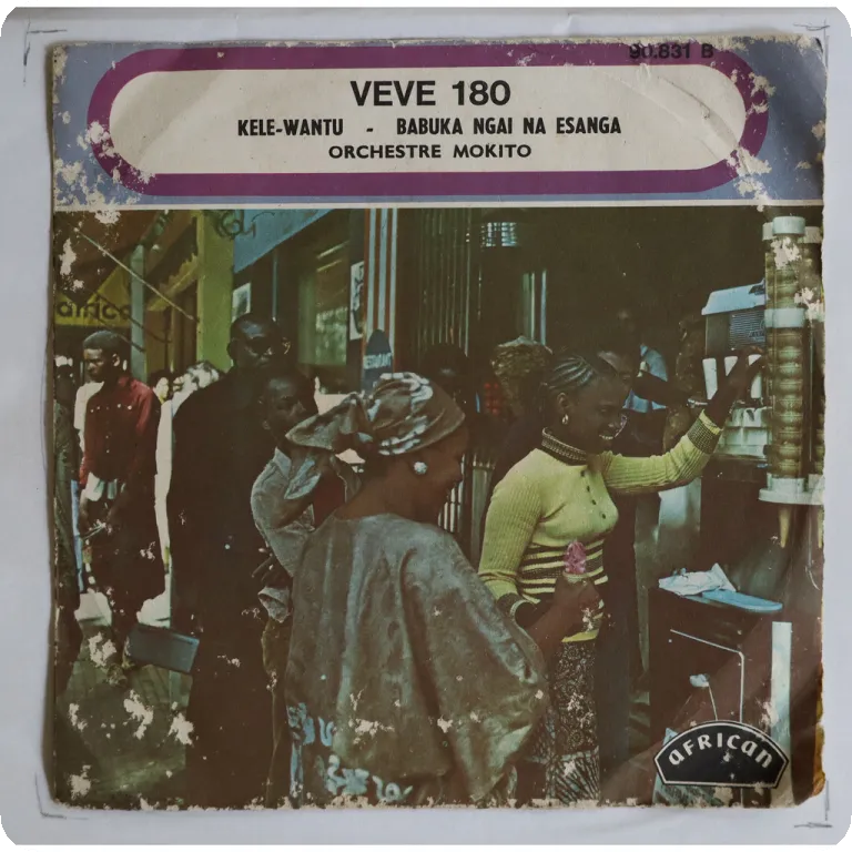 Serious dancefloor soukous winners on this scarcer release by the Congolese dancefloor kings. Sleeve w/ strong ringwear, some creases, aging, shop sticker on front, writings on labels. Record has