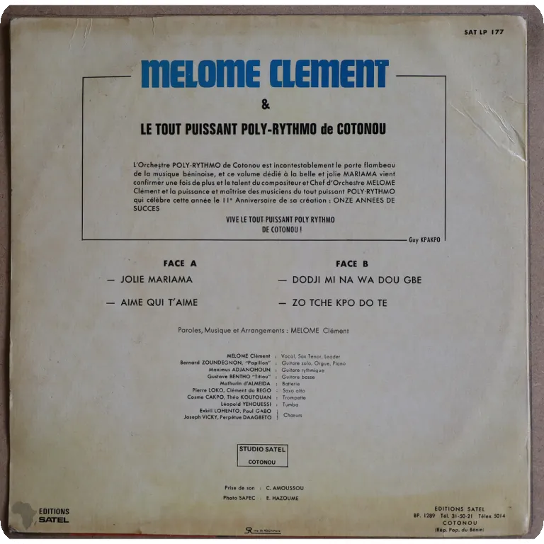 Cosmic disco tune as recorded by the Kings of Benin on this otherwise consistent soukous & afro pop LP, sleeve has some wear, creases on spine corners, some dirt on back, vinyl has light occasional