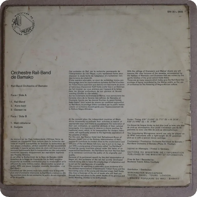 The Malian giants' debut masterpiece, with Salif Keita rocking the vocals, sleeve has aging & dirt, creases, some tears on mouth, dirt & a bit of wear on labels, record nas very numerous marks &