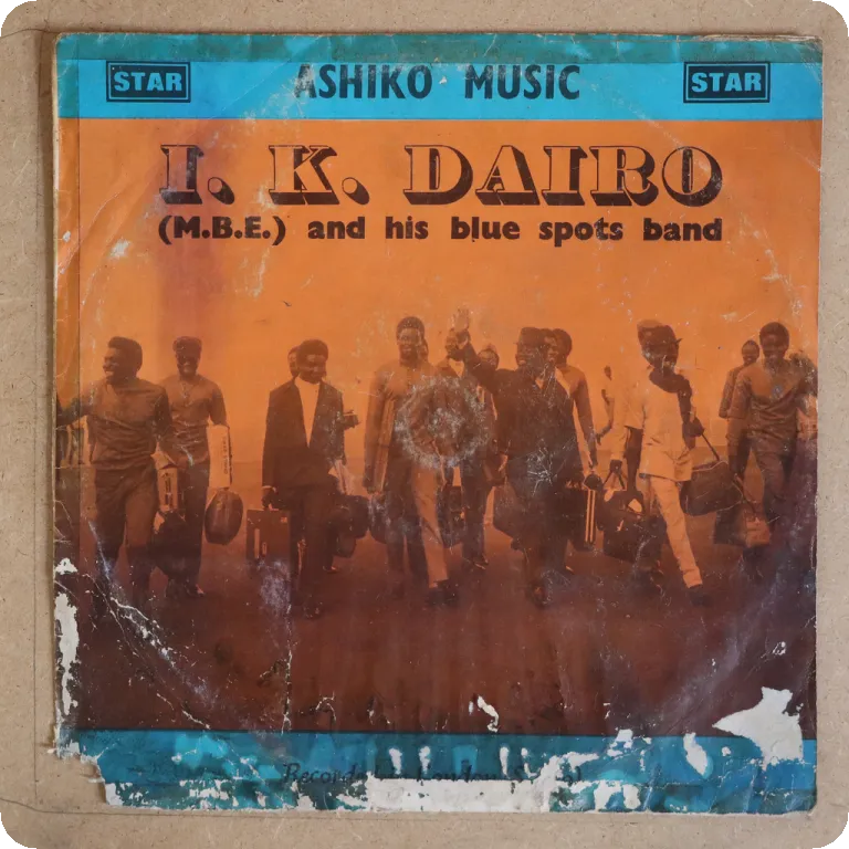 Consistent Ghana highlife LP by one of the leading groups of Ghana, also has 2 uptempo asiko beat, light aging & dirt, peel off on top seam, record plays quite well w/ occasional noise, noisier on B2