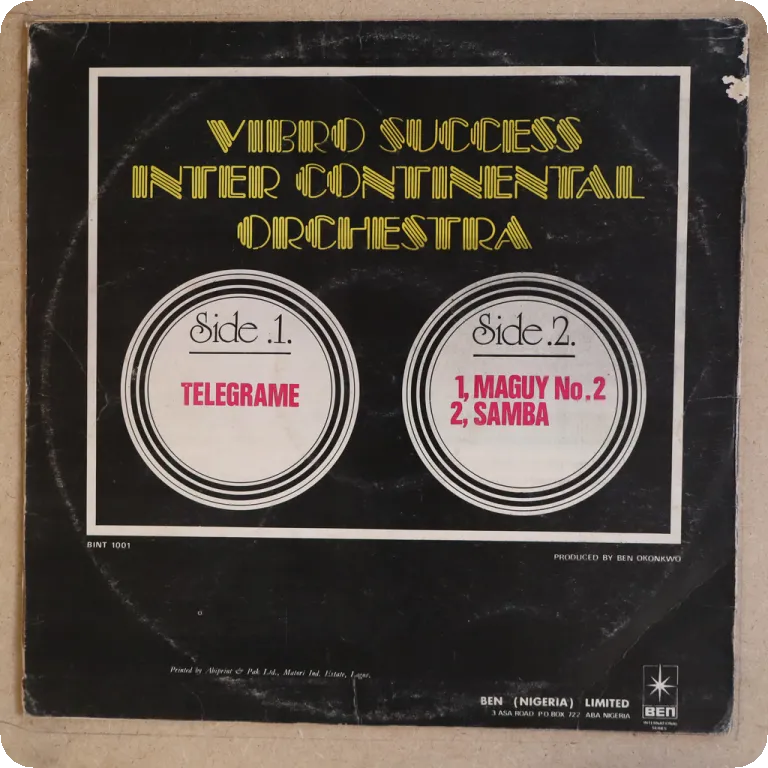 2 hypnotic afro tunes, a funky tune, latin & Congolese rumba influences, ziglibithy & other afro pop rhythms from ivory Coast, sleeve has some aging & dirt, large writings, record has opaque pressing