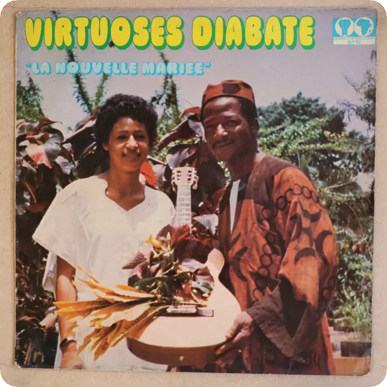 The three Diabate brothers deliver an acoustic manding guitar LP. Minor wear on cover, writings on labels, light to hardly noticeable noise, solid VG- to VG depending on parts.