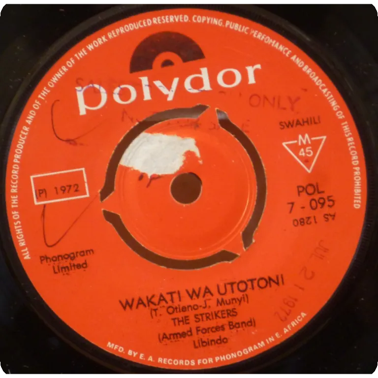 Rumba double sider and a scarce title by the Stikers aka Kenya Armed forces band. writings & peel off on one label Record plays VG w/ light noise & thin marks.