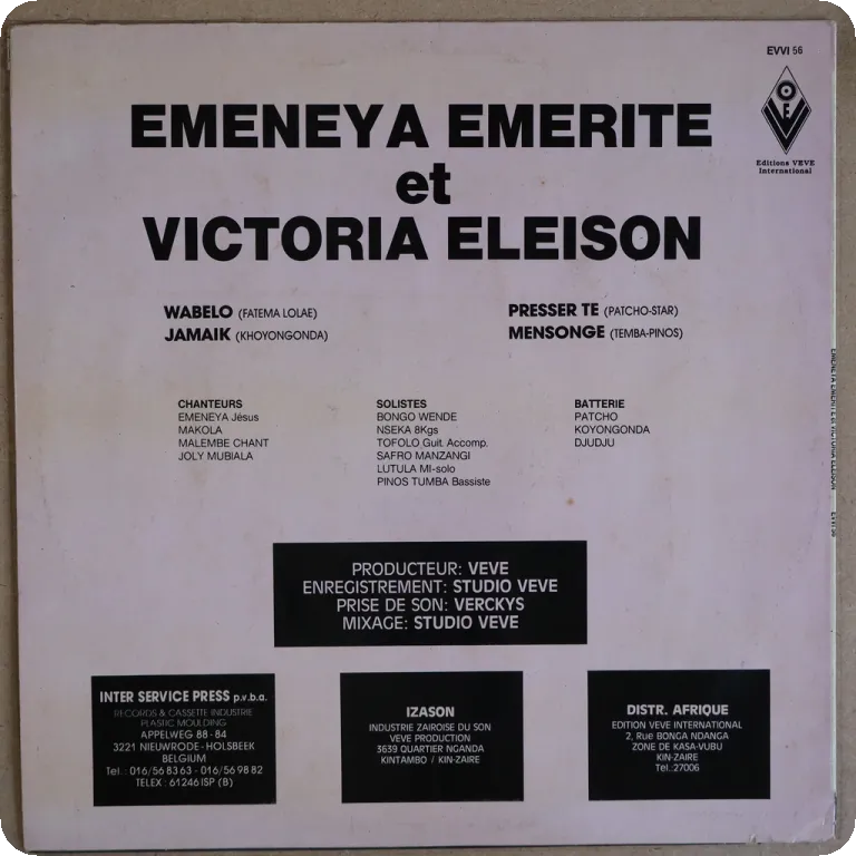Tropical dancefloor soukous masterpiece recorded in Abidjan. Light wear on cover, narrow water damage wear along spine on back, shops ticker on front, light creases, some dirt on B side label, record